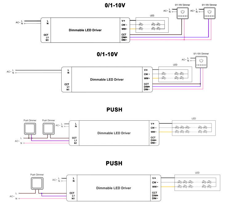 1. يوصى باستخدام الكميات المذكورة أعلاه من مشغلات LED المتصلة بالنوع C بناءً على درجة الحرارة المحيطة القصوى التي تبلغ 50 درجة مئوية.
