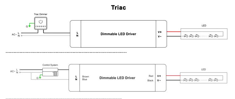 1. يمكن تعديل مستوى التيار الثابت الناتج من خلال طرف الإدخال لخط الطور المتردد (L) عن طريق توصيل جهاز باهتة الترياك.